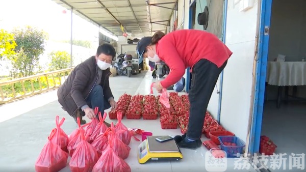 袁义达是泰兴市宣堡镇石堡村的汇丰生态果园草莓种植户,受疫情影响,老袁的几十个大棚的草莓面临滞销。生性不服输的老袁改变传统的销售模式,通过线上团购、线下集中配送的方式,解决了草莓的销售难题。