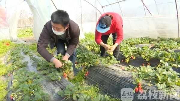 老袁介绍,这几天的工作量比较大,因为疫情的影响,大部分工人还都没有复工,所以田里的农活基本上都靠他们夫妻俩来完成:“23个棚就是我们夫妻两个忙,每天一起床都是采草莓,一天200斤的左右,几乎没有时间干农活。”