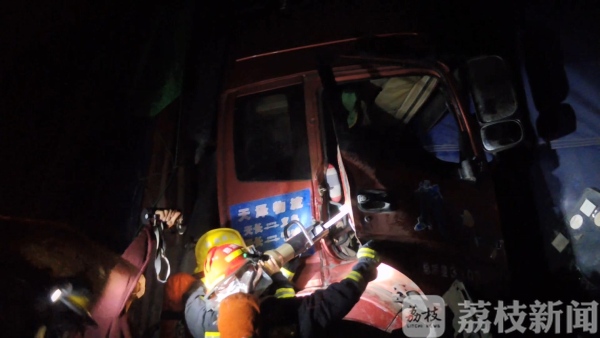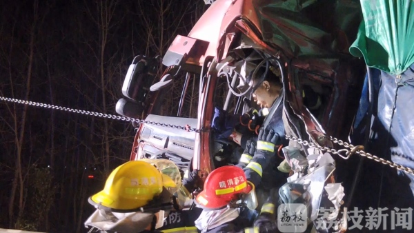 2月26日凌晨1点左右,扬州市邗江区蜀岗枢纽往安徽方向2公里处,三辆货车发生追尾事故,两名驾乘人员被困。当地消防部门接到报警后,立即赶赴现场救援。