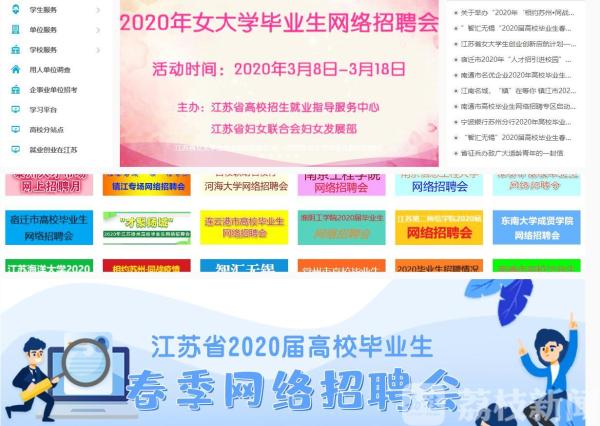 目前,包括江苏省2020届高校毕业生春季网络招聘会、百校联动名校行--河海大学2020届毕业生春季网络招聘会、南通市2020届江苏高校毕业生春季网络招聘会等在内大小几十场网络招聘会正持续进行中,学生可登录91job网站投递简历。接下来,全省还将举行多场网络招聘会和线上宣讲会,并根据国家出台的相关政策,全力做好2020届毕业生就业服务工作。