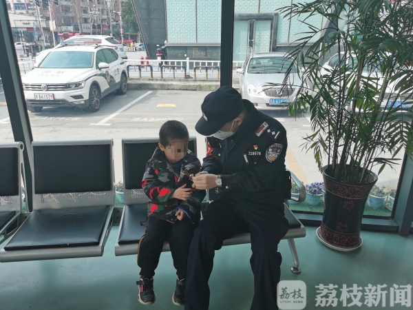 2月27号中午11点多,南京市公安局江北新区分局特巡警支队十村警务站接到市民林先生报警,称有个小男孩在他店门口,周围没有大人,像是和家里人走散了。