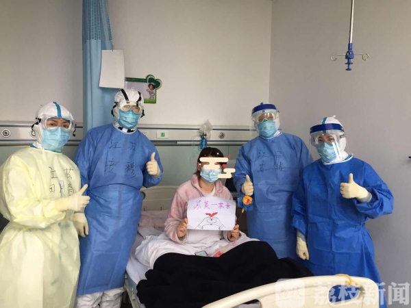 因为是同行,年龄又相仿,繁忙的工作间隙,我尽可能找机会和她多说说话。遭遇这样的不幸,她没有一点抱怨,很平静地告诉我:“在呼吸科工作就是这样,劳动强度大,风险也大。江苏队来了,给我们带来了这么多的人力支持,防护也升级了,同事们工作起来更安心,也更安全了。今天左靖芳护士长和几位主任带着鲜花和卡片来看我,感受到家人一般的温暖。”