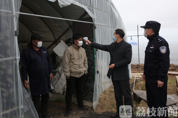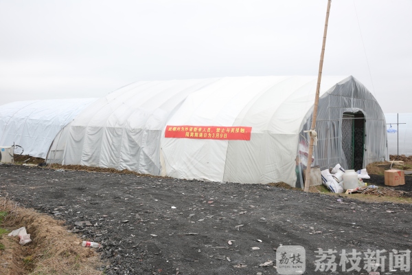 “此棚内为外省新来人员,禁止与其接触,隔离期满日为3月9日”,在农场的一个大棚外,用红布写着这样的提示语。兴东派出所所长茆卫东解释,按照规定,外来人员必须居家隔离14天。派出所考虑到农场地域广阔,人员稀少,农时又不能耽误,遂采取灵动机动的办法,让复工人员只在居家和固定的大棚内活动,边劳动边隔离。同时,联系疾控中心工作人员为其做核酸检测,并安排专门人员为他们代购生活日用品,既达到隔离的效果又不耽误农时。