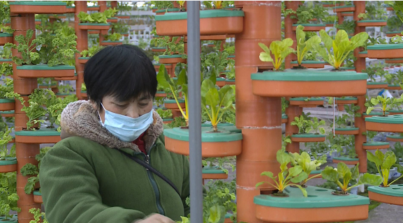 在响水县南河镇九丰农博园,陈家港镇合心村脱贫户颜俊梅、崔红平每天经过体温检测正常后入园工作,在农博园,她们主要负责打理水培蔬菜,每天工资80元,工作也很稳定。