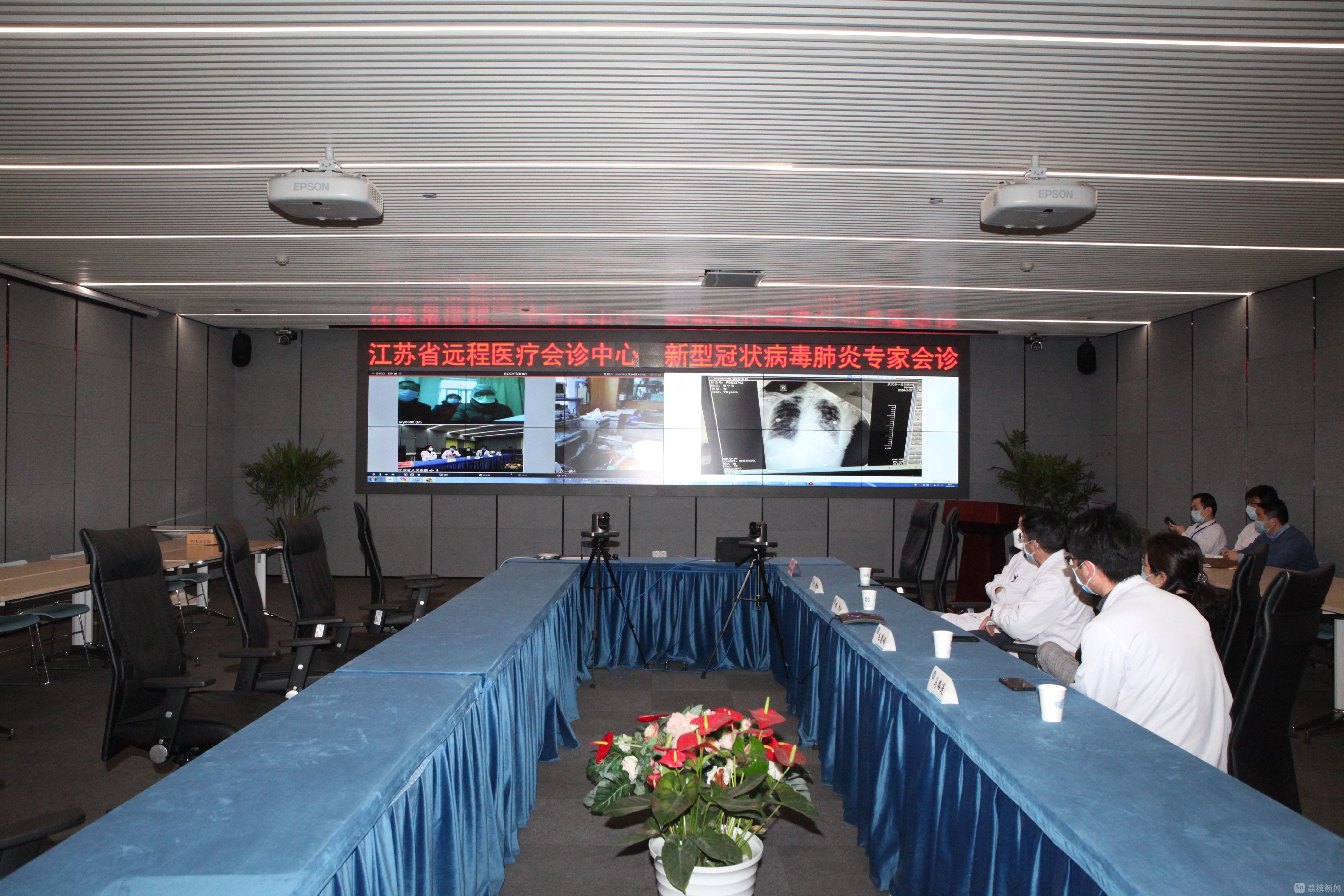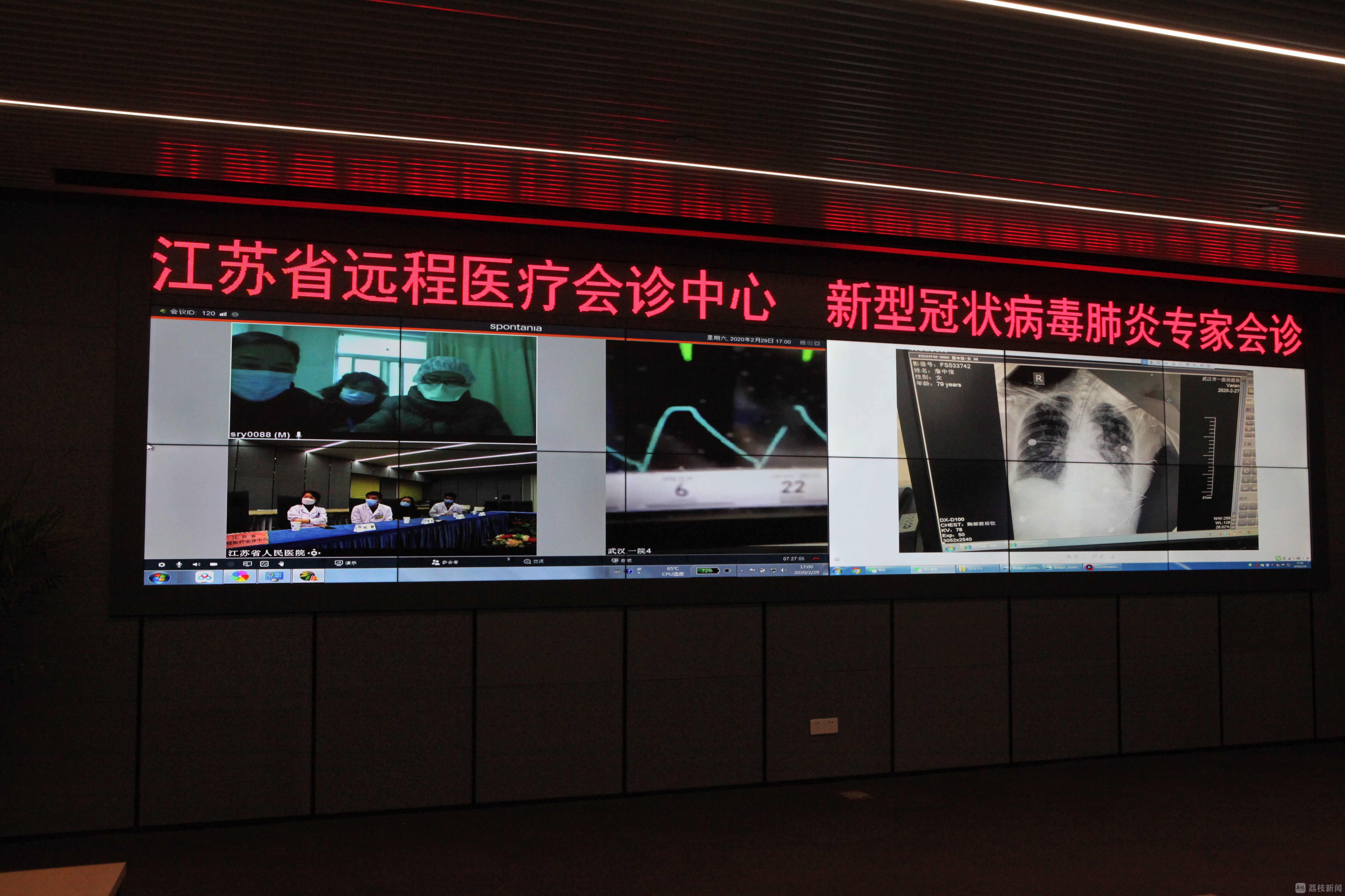 2月29日下午16点30分,在江苏省人民医院的江苏省远程医疗会诊中心内,江苏省人民医院呼吸与危重症科主任、江苏省卫生健康委员会防治新冠肺炎救治专家组组长黄茂教授、肾内科科副主任毛慧娟教授、心脏内科的刘静副主任医师和心脏大血管外科的马路遥副主任医师正与武汉市第一医院接管重症监护室的专家们——江苏省人民医院呼吸与危重症科的齐栩主任医师、重症医学科的张萍主任医师、刘云副主任医师等专家一起,为武汉市第一医院重症监护室的3例危重症患者进行了远程多学科专家会诊,形成了下一步治疗的总体策略和具体方案,且立即实施。