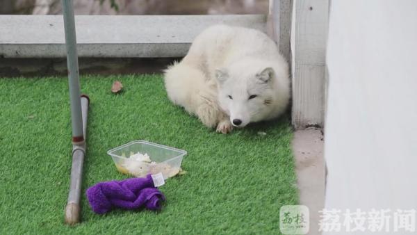 期间工作人员还买来了一些鸡肉给这只白狐投食。森林警察到现场后,初步认定这只白狐是为了躲雨才跑了进来,为了防止这只狐狸咬伤或者抓伤人,他们便对它进行了抓捕,接下来,将会把这只白狐送往镇江野生动物救助中心进行救助。