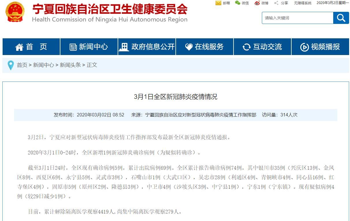 宁夏卫健委官网截图