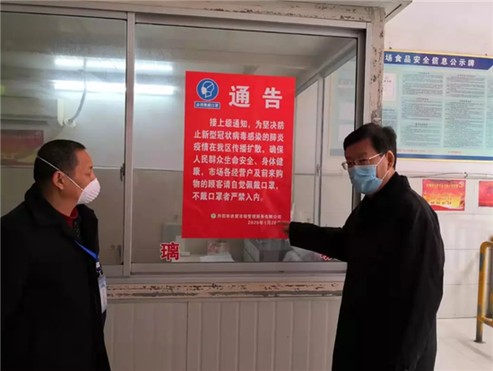 2月6日上午,省市场监管局朱勤虎局长采取“四不两直”方式,深入镇江丹阳市司徒镇的零售药店、个体蔬菜水产门店、农贸市场、丹阳市市场监管局司徒分局,以及省计量院检查疫情防控市场监管措施落实情况,强调要坚决贯彻落实党中央、国务院和省委、省政府,以及市场监管总局的决策部署,全力做好市场监管工作,确保市场秩序基本稳定,为疫情防控提供坚强保障。