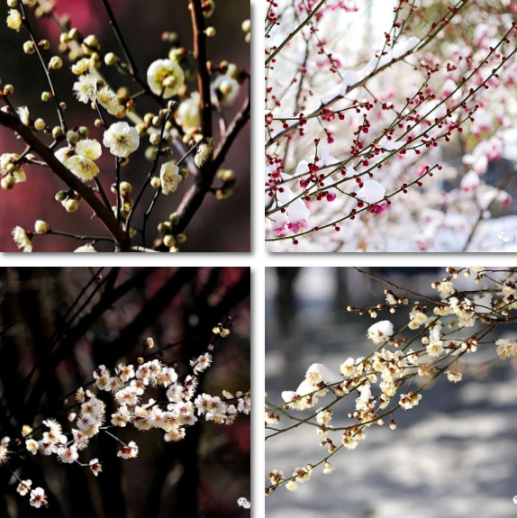 一枝枝梅花娇俏清丽,有独占枝头娇艳欲滴的,有将开未开含羞带怯的,也有开到烂漫绚丽多姿的,生机盎然,美不胜收。