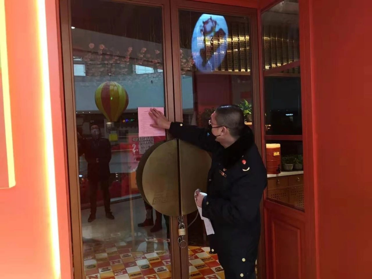 “都是我们贴的,不让聚餐,这个春节,我们一直在美食街黑下脸来当‘坏人’。”刘春辉今年54岁,是邗上分局年龄最大的“老干部”。老刘的执法“搭档”缪恒军45岁,是刚到任的副分局长。自大年初二以来,两个人一天都没有休息,不仅白天巡查,晚上10点还会再出门巡查一次,以防个别饭店、烧烤店打“游击”。