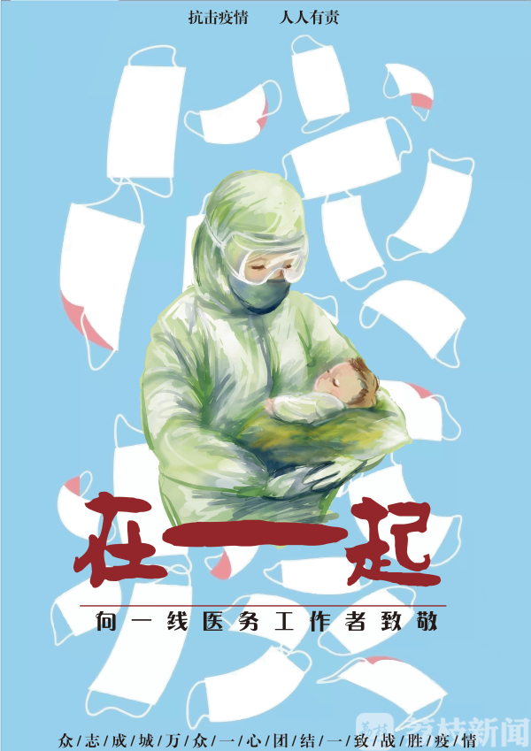 设计说明:国难当前,无数医务工作者日夜奔走在疫情第一线,不惧安危不畏辛劳,医者用他们温柔的双手抚慰着病患们一颗颗敏感忧惧的心,作为普通人的我们敬佩感动之余亦与他们同在,我们永远“在一起”。
