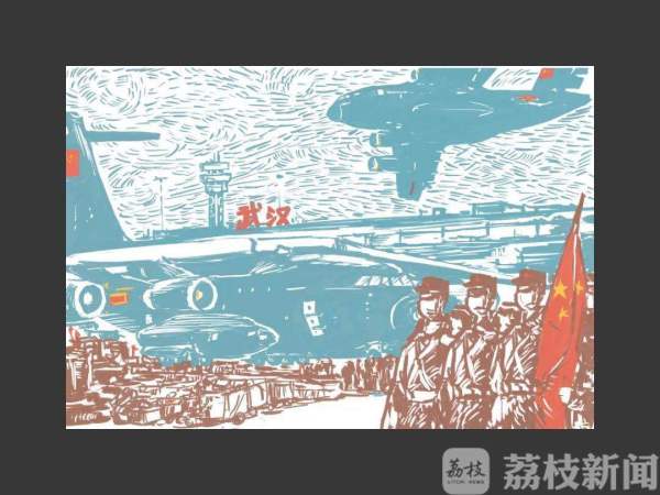 设计说明:以绘画的方式表现出医生满怀信心支援武汉,家人,国家期盼着这些“战士们”凯旋归来,战疫必胜。