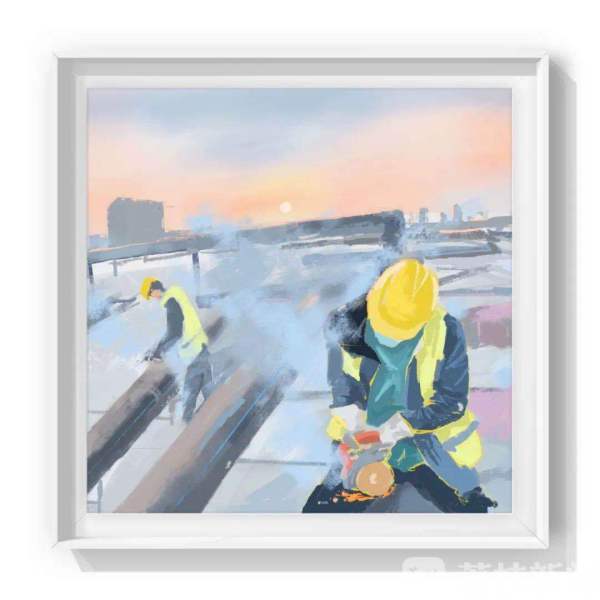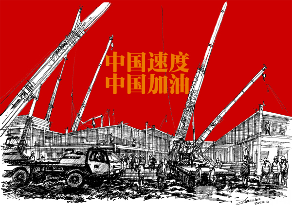 设计说明:武汉火神山雷神山医院在数千名建筑工人夜以继日的建设下,用难以想象的惊人速度展现了“中国速度”和“中国力量”,让全世界为之点赞,给中国加油!作品以手绘艺术的形式记录了这一时刻,以此表达战胜疫情的坚强决心、致敬所有抗击疫情的一线人员!