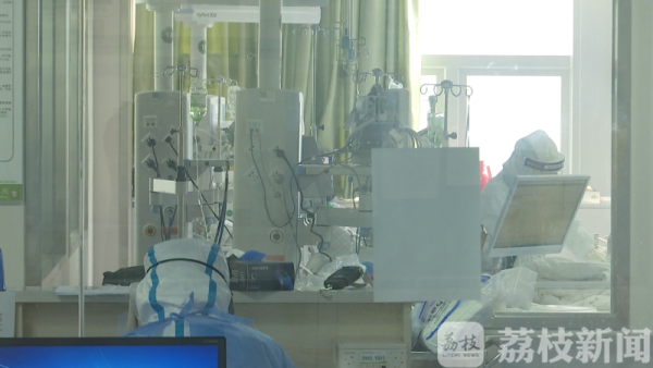 合并之后,黄石市中医医院的最后3名重症患者转到了黄石市中心医院。目前这里的11名危重患者,全部由来自江苏的医护人员治疗、看护。黄石市中心医院重症医学科业务主任、南京医科大学附属逸夫医院重症医学主任医师赵炜告诉记者,目前黄石市中心医院ICU里主要是70岁以上的老人,医生会利用综合手段尽量让他们的病情逐渐好转。