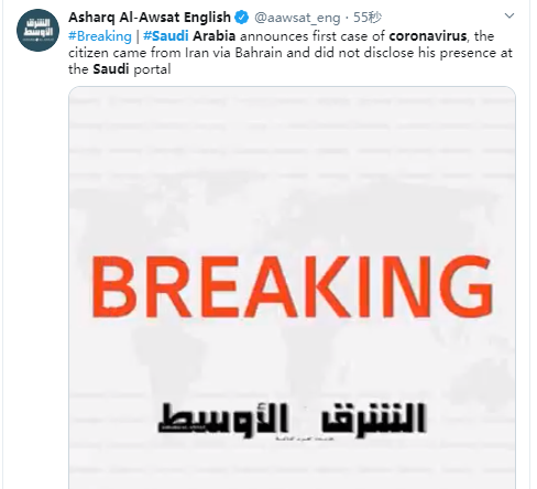 海外网3月3日电 据《中东时报》英文版3日报道,沙特阿拉伯宣布该国出现首例新冠肺炎确诊病例。据报道,这名患者是从伊朗出发经由巴林中转来到沙特阿拉伯。目前沙特方面未公布这名患者的行踪。