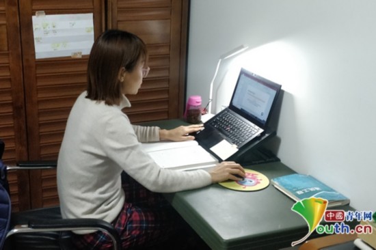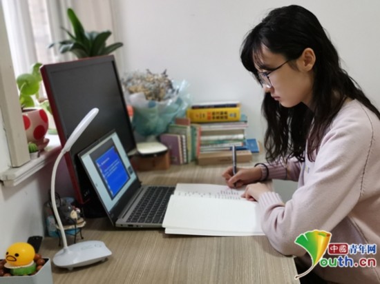 江南大学学生卢杨在收看“云课堂”。受访者供图