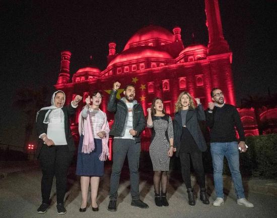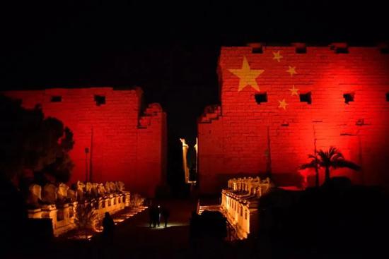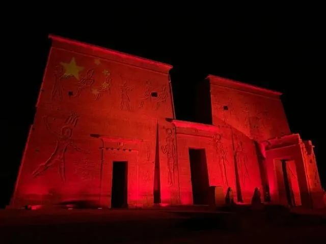 为表达埃及政府和人民对中国抗击新冠肺炎疫情的坚定支持,在哈莱启程的同一时间,根据埃及总统塞西指示,埃及三大世界文化遗产地——开罗萨拉丁城堡、卢克索卡尔纳克神庙、阿斯旺菲莱神庙通过灯光秀的方式点亮鲜艳的五星红旗。