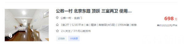 尽管新房、二手房市场一片低迷,硬通货学区房则“逆流而上”。某二手房网站上挂了一套公教一村建筑面积52.83㎡的三室房源,单价达到132122元/㎡,总价698万元,是北京东路小学和玄武高级中学、梅园中学的学区房。