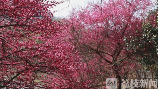 在第一山公园,娇艳的杏花如薄雾含烟轻覆山头,一层层缥缈如仙境,远看绯云一片,近瞧云霞万朵。漫步杏林间,竞相绽放的杏花如同紫雾彩霞将人笼罩,热烈鲜艳的花海令人目不暇接。