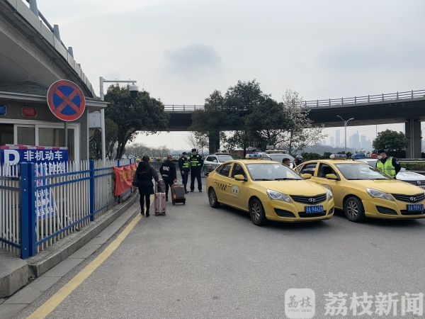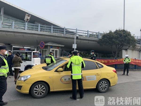 随后,在南京火车站北广场西公交场站附近,执法人员发现一位携带行李的乘客,在站外上了一辆出租车。记者上前一问,果然司机并没有给乘客量体温,也没有让他扫码登记。