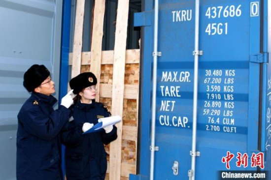 资料图:银川海关关员对中欧班列进口木材开展现场查验。申俊杰摄