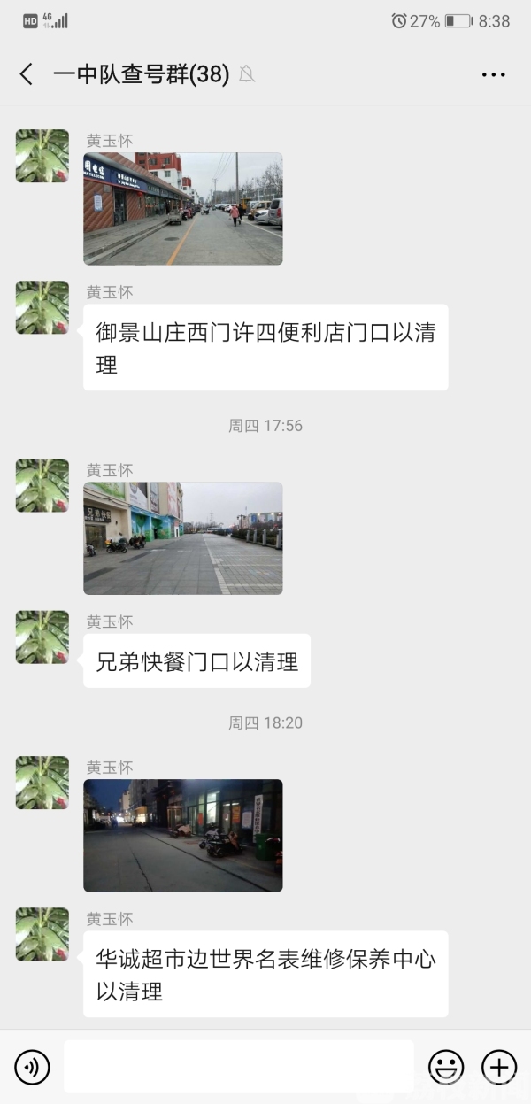 “17时34分,御景山庄西门便利店门口已清理。”