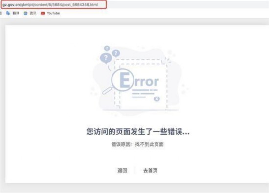 但无论是记者还是相关同事尝试多次,依然无法打开相应广州市政府网站的上述政策文件网页链接。