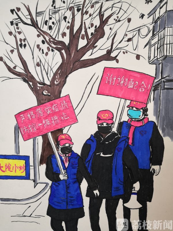 新冠肺炎疫情发生后,扬州市广陵区科技局副局长卢璇的“挂包”单位是曲江街道施井村,在管控一线工作之余,她用画笔记录了抗“疫”故事,定格了一幕幕坚守的瞬间。
