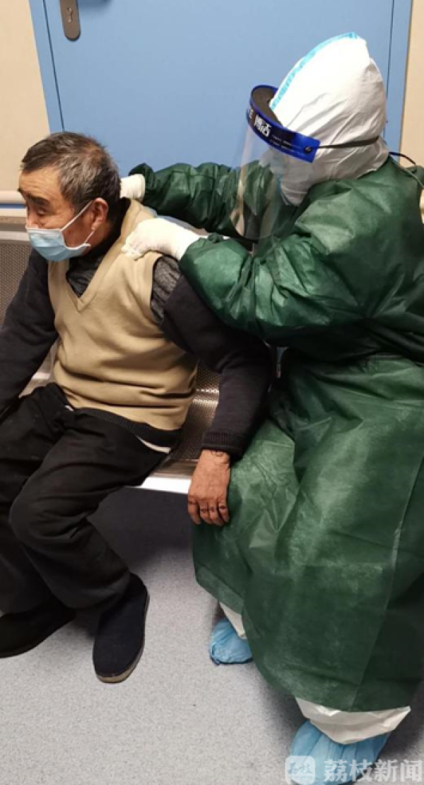 护士正搀扶着他,