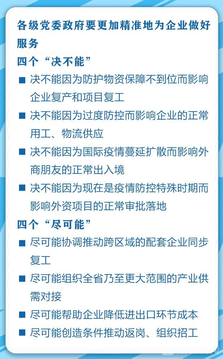 娄勤俭指出,疫情发生以来,我们高度重视、精准服务,切实帮助外资企业以及在苏外籍人士有效应对疫情。当前疫情形势仍然复杂严峻,企业复工复产和项目建设中还有一些困难,各级党委政府要坚持问题导向、需求导向、结果导向,更加精准地为企业做好服务,营造更加温暖、更有吸引力的营商环境。决不能因为防护物资保障不到位而影响企业复产和项目复工,决不能因为过度防控而影响企业的正常用工、物流供应,决不能因为国际疫情蔓延扩散而影响外商朋友的正常出入境,决不能因为现在是疫情防控特殊时期而影响外资项目的正常审批落地;尽可能协调推动跨区域的配套企业同步复工,尽可能组织全省乃至更大范围的产业供需对接,尽可能帮助企业降低进出口环节成本,尽可能创造条件推动返岗、组织招工,特别是满足企业对高技能人才的需求。只要政府与企业携手并肩、一同努力,明天一定会更好。