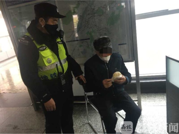 昨天上午10时许,南京地铁分局南京南站所民警在南京地铁药科大学站巡逻时,发现了一位眼神迷茫的老人。见他身上的衣服和帽子都已经有些脏了,民警立即上前询问,但无论民警问他什么,老人都回答不知道。出于防疫的考虑,民警第一时间为他测量了体温,显示其体温正常,随后将其带至休息点先行休息。在休息点里,民警一边继续尝试与老人沟通,一边为老人准备了充饥的包子和热水,并将详细情况向所领导进行了汇报。正在民警为老人的一问三不知头疼时,却意外得知老人的家人已经到了地铁南京南站。