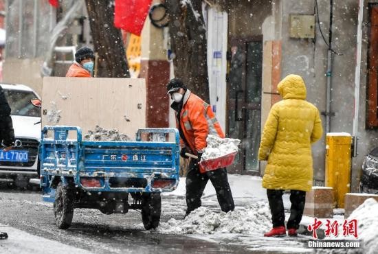 资料图:新疆维吾尔自治区受冷空气入侵影响,当地2月18日晚间出现降雪天气。中新社记者 刘新 摄