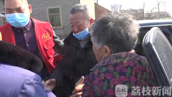 3月4日一早,杨立志把老人带到理发店理了个发,又去射阳国际大酒店开了个房间,给老人洗澡换上全新的衣服,理发店和酒店得知是送流浪老人回家,免除了全部费用。下午2点多钟,护送老人的车子出发,在进入阜宁县境内时,老人头靠着窗户玻璃看着外面,眼睛里含着泪水。车子开到老人的家中时,老人的大嫂、三哥、侄儿、侄女以及孙子辈都来了,还有不少附近的村民也赶了过来。看到老人从志愿者的车子上下来,他的大嫂、三哥以及众多亲戚都围了上来,相拥而泣。