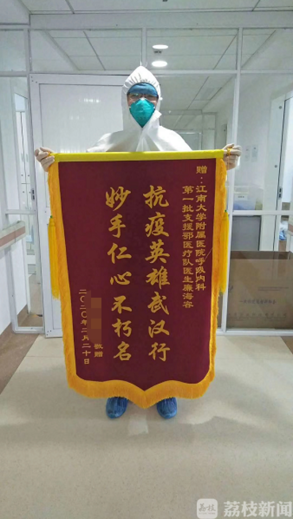 经过精心施治,现在小胡逐渐好转。发热、咳嗽、咳痰、胸闷等症状消失,复查肺部影像学显示病灶吸收好转,连续复查3次咽拭子及深部痰标本新型冠状病毒核酸检测为阴性,符合治愈出院标准。今天下午两点,出院时刻终于来了,小胡很激动,从持续高热、病情危重到今天体温正常、治愈出院,这38天,让他终身难忘。“你们辛苦了!感谢江苏医生的付出,感谢你们无微不至的关怀,我才能这么顺利地出院。我一定会好好活着,尽力回报社会。”看着小伙子恢复健康,平安出院,我也很欣慰,赶紧叮嘱他不可掉以轻心、放松警惕,如无必要仍要减少外出、避免聚集,继续坚持做好个人防护,如有不适随时联系。