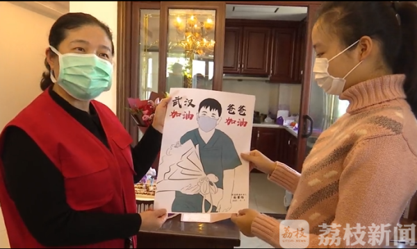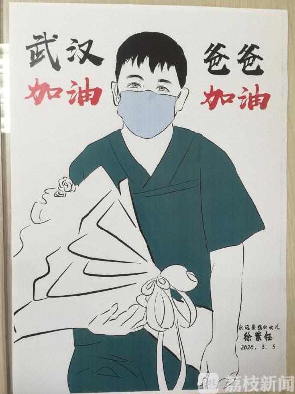 女儿徐紫钰亲手画了一幅画送给爸爸,她对爸爸说:“你在武汉那边拍樱花给我看,我在无锡这边拍樱花给你看,这样我们就可以一起看樱花了 ”。“两地樱花都很漂亮,以后有机会老爸带你游武汉,看看老爸工作奋斗过的地方。”徐益明笑着回应道。