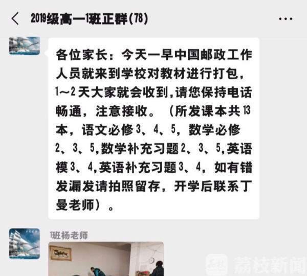 荔枝新闻讯 3月1日早上,徐州高级中学高一(1)班家长群里的一条邮寄新教材的信息,让不少家长和同学们感动不已。