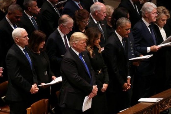 特朗普称,自2016年自己与奥巴马在白宫椭圆形办公室交谈以来,2018年12月在葬礼上的这段互动是两人唯一的交流。他在当天也表示:“我不喜欢他所做的工作。不喜欢他和拜登做的工作。我不喜欢他对美国军队所做的事情。”