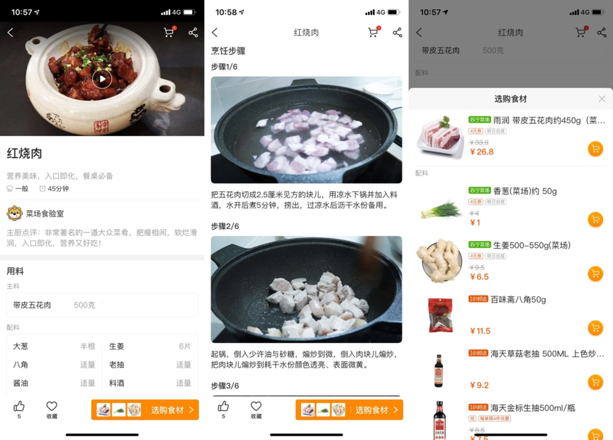 在苏宁小店APP中的“苏宁菜场”板块内,全新上线了“菜场实验室”栏目,内设有精选、私房菜、快手菜、秋冬进补等12个菜肴分类。并配有制作难度、菜品点评、所需用料等信息,以视频+图文形式解析烹饪步骤,还有“一键”选购食材的功能,甚至能直接购买烹调中必备的调料。