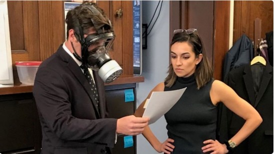 美国议员戴防毒面具