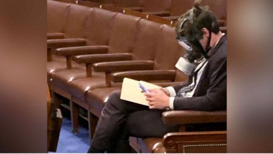 有美国议员戴防毒面具参加国会投票......