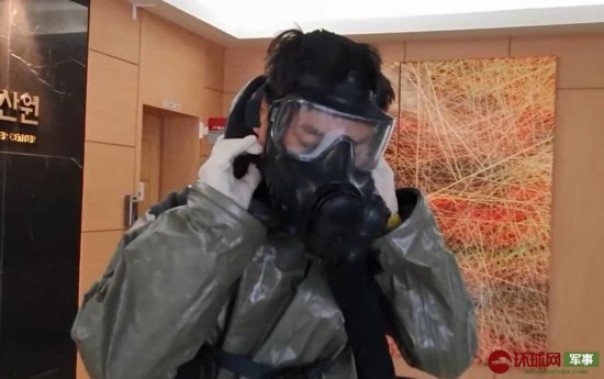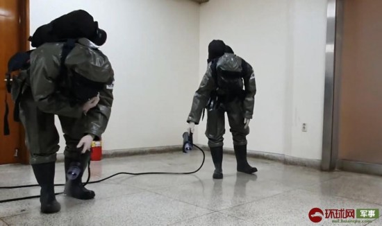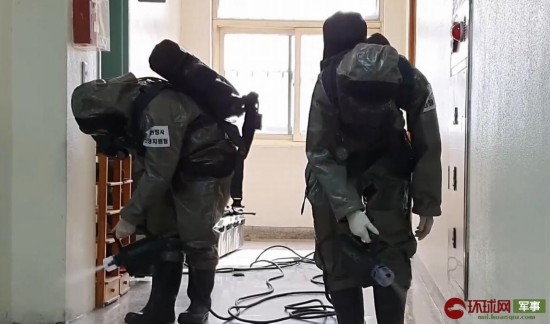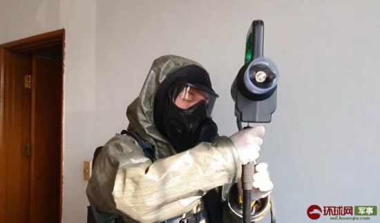 在作业过程中士兵们也是身着专业的高级别防护服,佩戴了最新型的“双层空气呼吸器”,这种防毒面具式的呼吸器可以让士兵在封闭的污染区内最长维持8小时的安全呼吸。