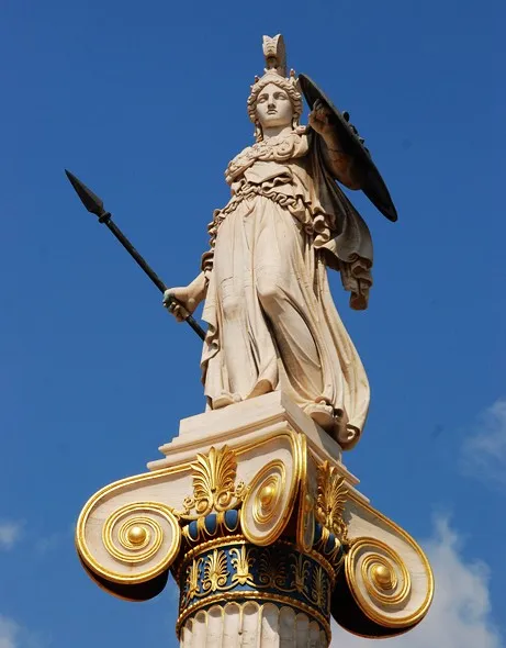 在希腊神话里,战神阿瑞斯是男人,而智慧女神雅典娜是手持长矛和盾牌的女人。