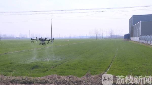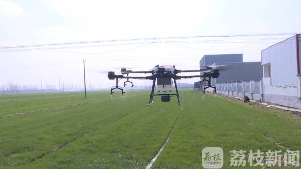 无人机桨翼飞旋,与麦地保持着3米左右高度匀速飞过,除草药剂均匀地喷洒在绿油油的麦苗上。村民徐友良介绍道:“像这一片有两亩地,人工打药需要二十分钟左右,给这无人机打只在两到三分钟。而且打得比人工要均匀得多!”