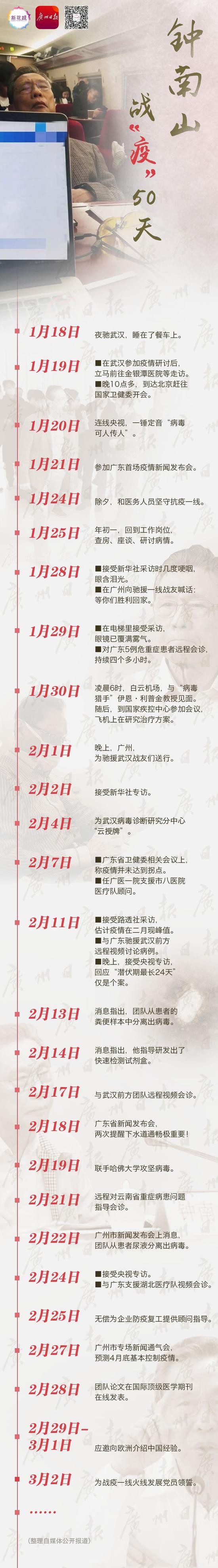 1月18日夜驰武汉至今,钟南山战“疫”已50天,整理媒体报道可以发现,50天来他为疫情奔波的行程满满当当,始终冲在前线,几乎没有休息过。在广州新闻专题通气会上发出“4月底基本控制疫情”的信心后,又马不停蹄为欧洲呼吸学会介绍中国经验。最新消息显示,在他参与指导下,国际首个非转基因新冠肺炎小鼠动物模型成功建立。
