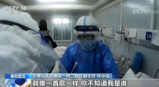 穿着隔离服患者看不见白衣战士的容貌就像一首歌一样你不知道我是谁