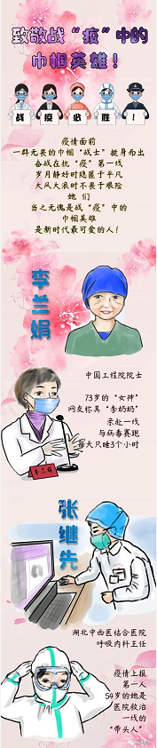 在三八国际妇女节来临之际,江苏省宿迁市沭阳小大姐吴璇创作了一幅漫画,致敬战“疫”中的巾帼英雄,让我们向她们说一声,谢谢!