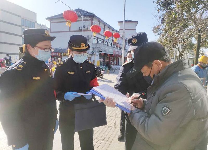 坚持市容管理和疫情防控工作“两严两实”。继续坚持“一手宣传牌一手小喇叭”上岗,戴好防护用品,做好自身防护;督促指导已营业店铺营业时必须戴口罩、手套等防护用品,做好店面消毒,体温测量和人流管控,向店铺赠送《新型冠状病毒肺炎预防手册》,排查店铺防控隐患信息;重点劝导不戴口罩出门的市民群众和打牌、喝茶、聊天等聚众扎堆行为,督促继续落实防控规定。此外,加大对乱扔烟头、随地吐痰、乱扔垃圾、乱倒污水等破坏环境“小微”违法行为的查处力度,确保发现一起、查处一起、清理一起,坚决不留死角和盲点。