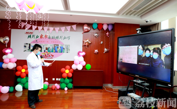 “从你前往武汉时,我们就很惦记你。感谢你对我母亲的照顾,也希望你能像照顾我母亲那样照顾好自己。我们等你早日回家。”在东海县人民医院27病区17床,患者家属顾海萍通过视频将祝福送给护士张利娟。顾海萍73岁的母亲因糖尿病住院已有4个多月。治疗期间,管床责任组长张利娟时常帮助顾海萍,给她母亲翻身拍背,做踝泵运动。“妈妈,我想你了!祝你女神节快乐。我在jia里deng你回来。我想去konglong园,回jia我们一qi去。”张利娟儿子李旻轩给妈妈朗读了自己写的一封信,稚拙中饱含着浓浓的真情。