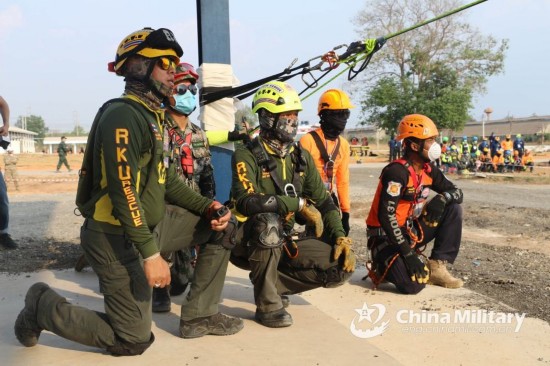 “金色眼镜蛇-2020”联合军演人道主义救援减灾实兵演练1日至4日在泰国北柳府国家减灾训练中心举行,来自中国、美国和泰国等7国的200余人参加此次演练。