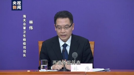 海关总署卫生检疫司司长林伟:针对世界卫生组织将新冠肺炎疫情全球的风险级别由“高”上调到“非常高”这样一个严峻的态势,我们现在已经实施了两道体温筛查,有效排查高风险人群,进一步加强对来自疫情严重国家或地区的交通工具的查验,全部实施登临检疫。
